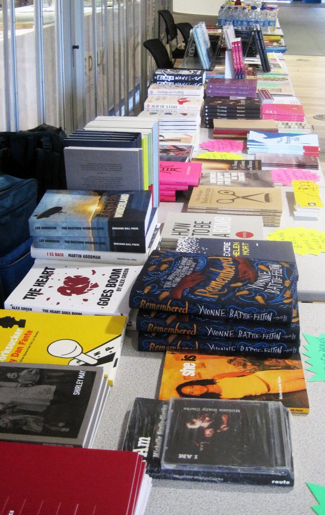 To poet Gav Hudson for managing advice session sign up, Brian Lewis from Longbarrow Press for manning an excellent extensive bookstall for the day, (and northern publishers: Blue Moose, And Other Stories, The Poetry Business, Dead Ink & Valley Press for sending their fine books and pamphlets to sell), Sile Sibanda for her general support and encouraging and enthusiastic hosting, Warren Draper and apprentice Cameron for their fine photography, to Spleeny and Sez for Write Radio podcasting, to Michele Beck for travel support, to Andy Hill from First Story for run up solidarity, and to all the individuals and organisations who have supported this event whether by enthusing young people, or helping to spread the word. Competition prizes were supported by several wonderful bodies – our partners Arvon (thanks Joe Bibby), Nick Sidwell, the Literary Review and the Reading Agency.