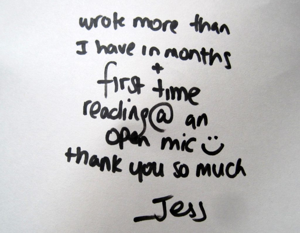 We are certain, within the building on Saturday – whether quietly taking things in, or loudly on the mic – among those present were many of the creative movers and shakers, playwrights, poets, novelists, and spoken and written wordsmiths of the future – and we’re delighted we could bring you together and help to spur you along.