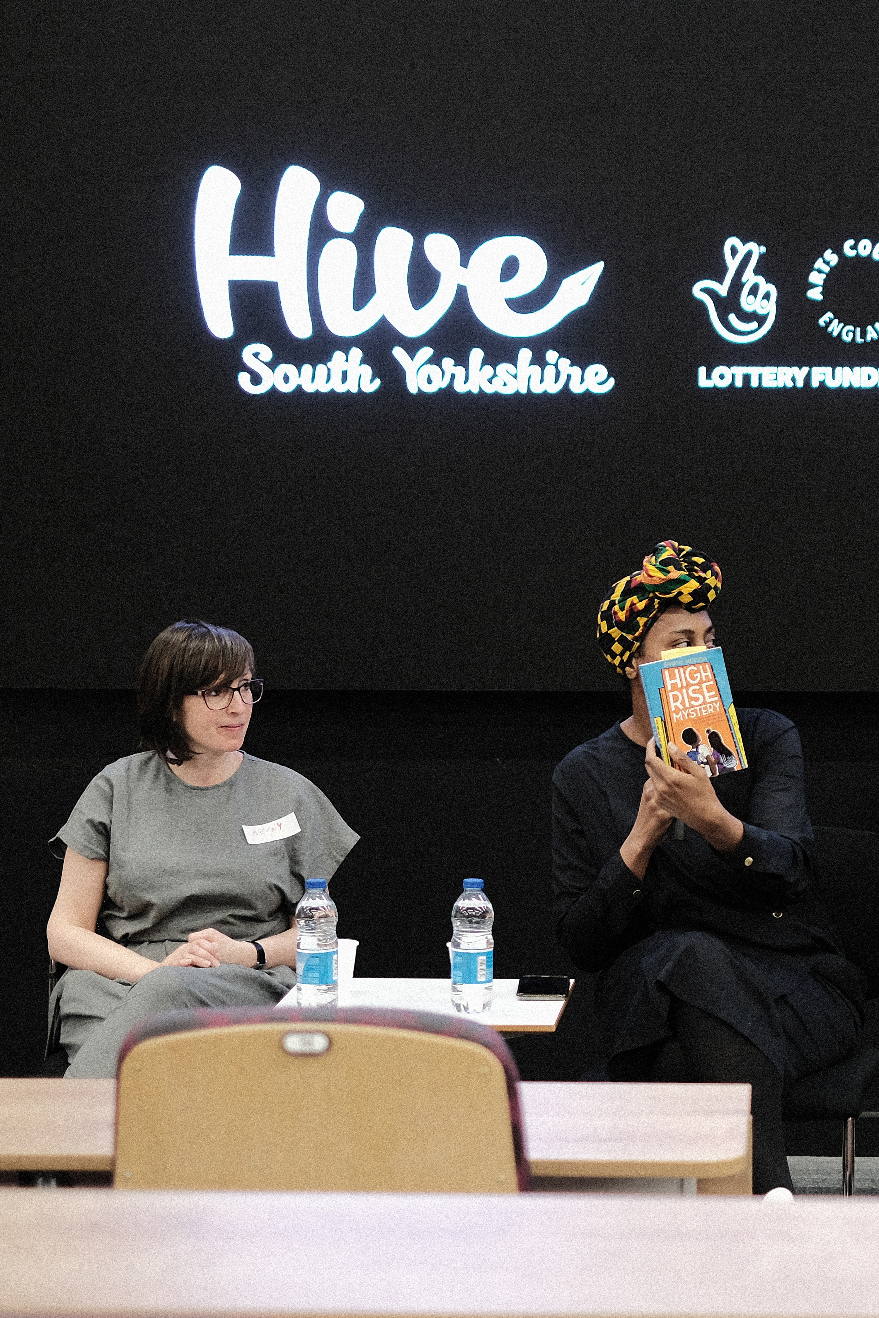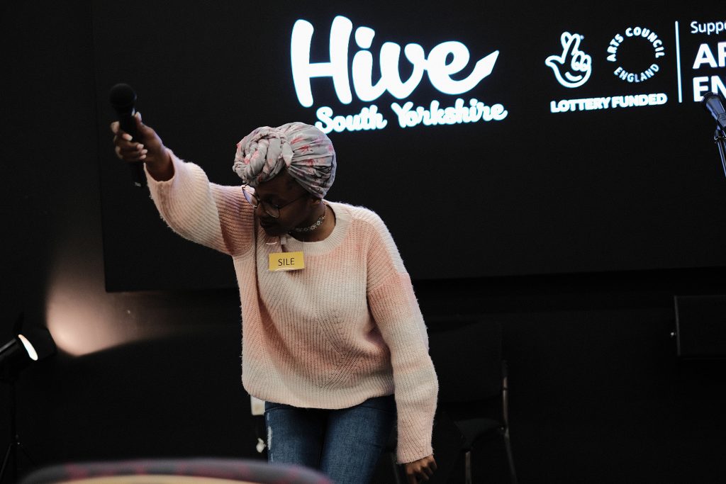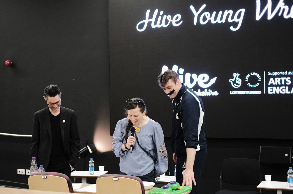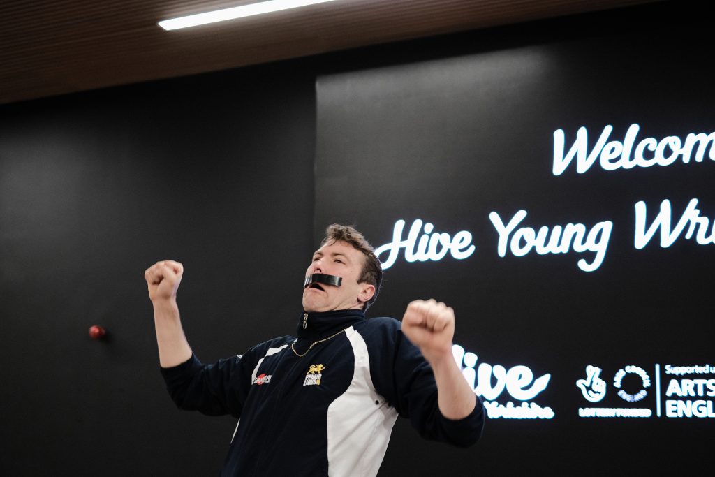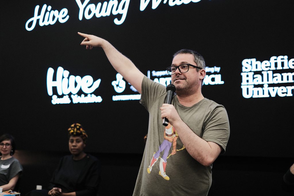 Next up we’d like to thank all the amazing writers and professionals for coming and giving so generously of themselves and their knowledge, insights and craft through workshops, panels, talks, advice 1-2-1s and performances – many of whom, as with front of house, very kindly gave their time and skills for a reduced rate or entirely for free to make the day possible. In no particular order, and in salute to all: Sharna Jackson (Site Gallery), Simon Bestwick, Oz Hardwick, Dave Windass, Tom Knight (supported by Ubisoft), Stan Skinny, Dan ‘Loops’ Bernard, Justine Gaubert, Yvonne Battle-Felton, Stacey Sampson, Louise Wallwein, Kate Fox, Dan Ingram Brown, Bambos Georgiou, Desiree Reynolds, Kate Garrett, Nik Perring, Jen Booth, Kevin Duffy (Blue Moose Books), Eleanor Kent (And Other Stories) Becky Cherriman, Michelle Scally Clark and Steve Dearden (The Writing Squad) – And to the latter, Becky and Michelle for accompanying members of Ilkely and Bradford Young Writers (and Erica Morris at Ilkley Literature Festival for making that happen), and to Steve Dearden for enthusing members of The Writing Squad to join us for the day, and for his ongoing support of Hive.