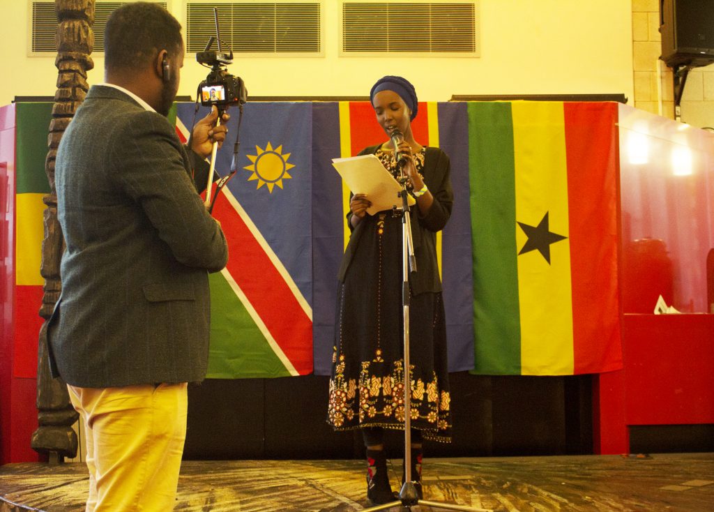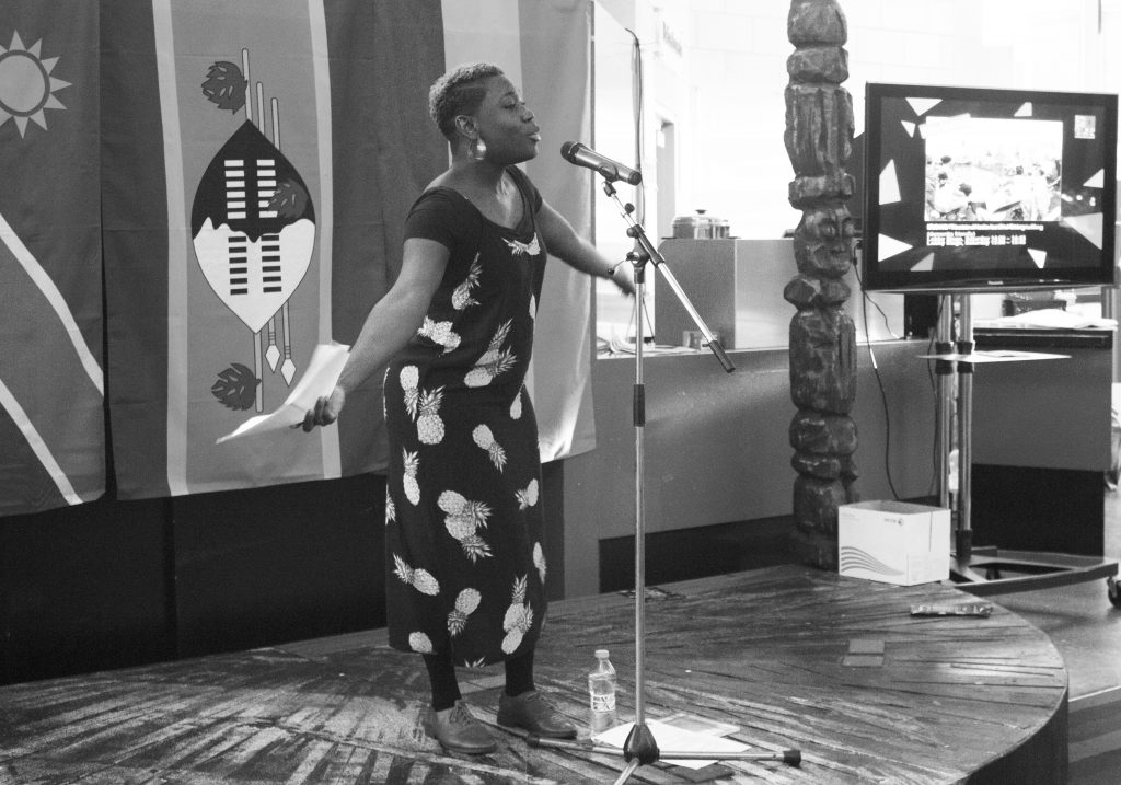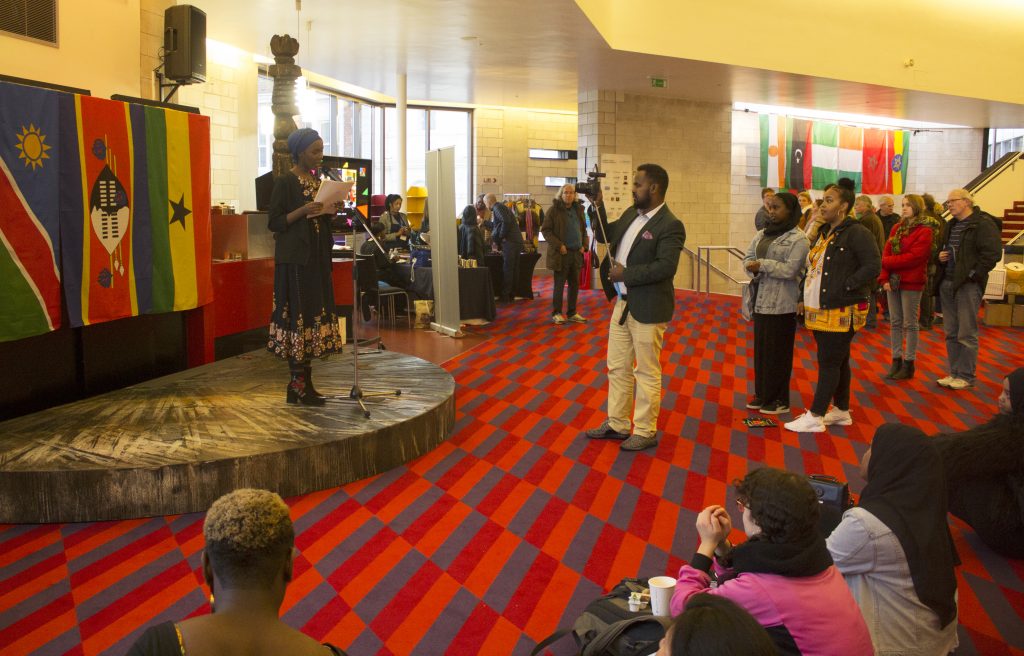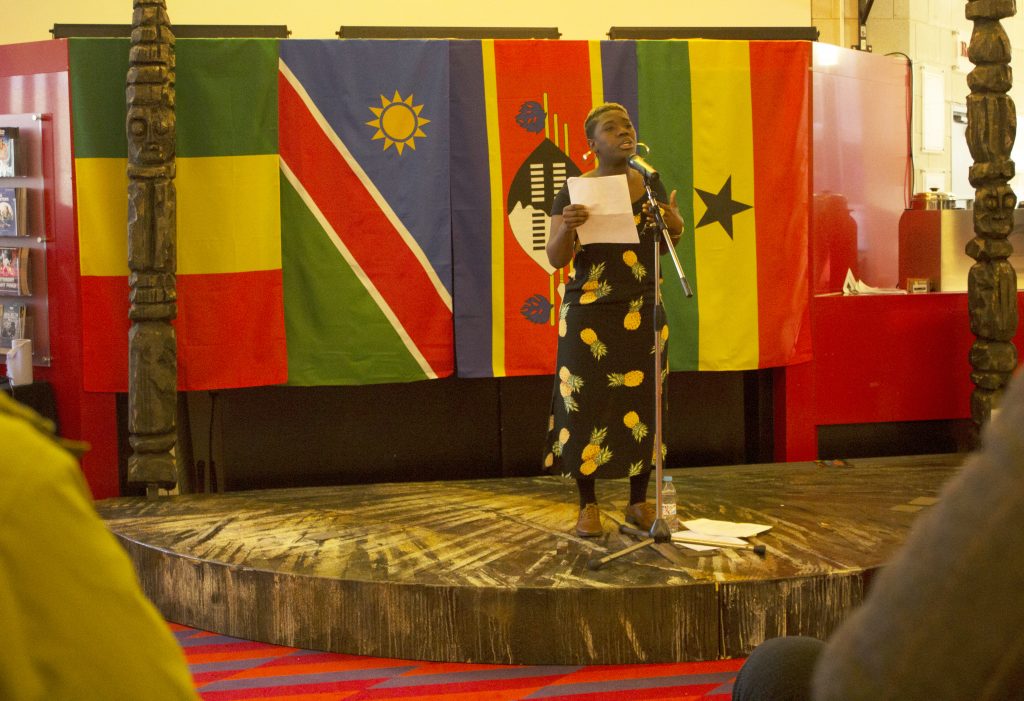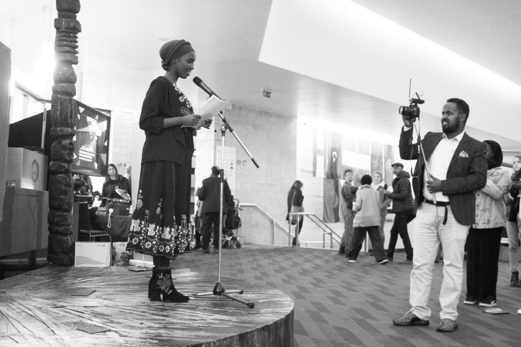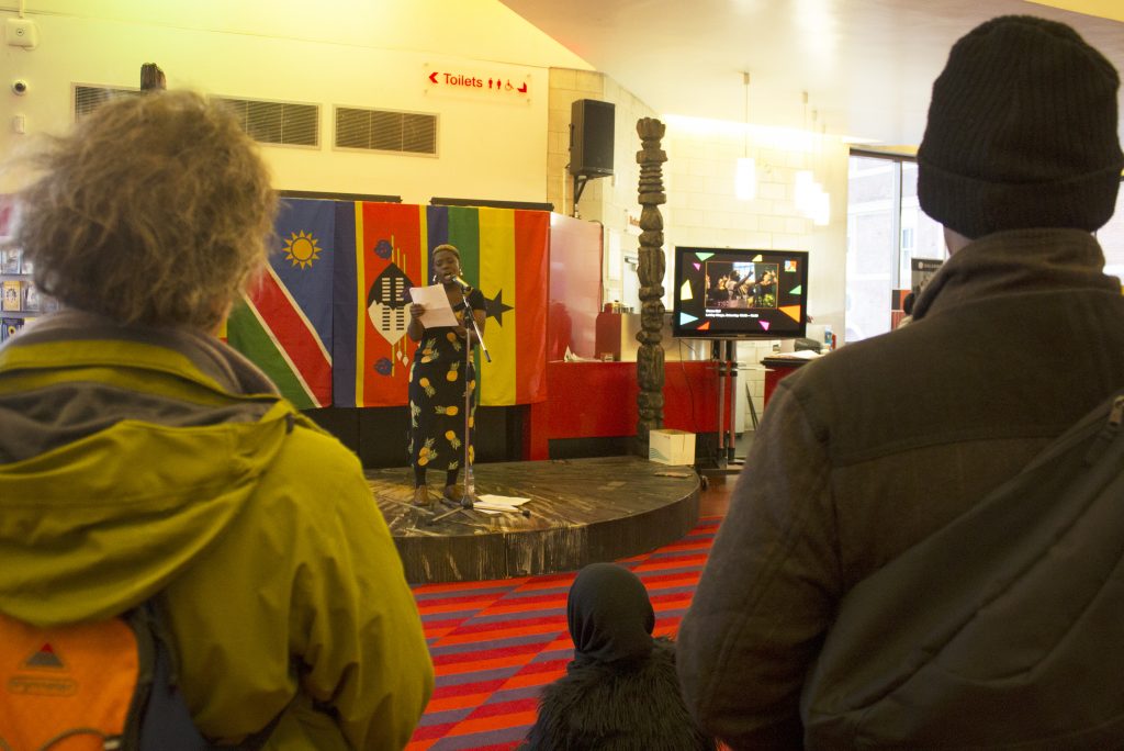 They were: Silethokuhle Sibanda (Zimbabwean), Warda Yassin (Somalian) Salma Lynch (Moroccan), and Danae Wellington (Jamaican). The stage was situated in the busy foyer area of the Crucible so attracted a wonderful mix of audiences of all ages, from those who had just wandered in to see what was going on, to family and friends coming to support.