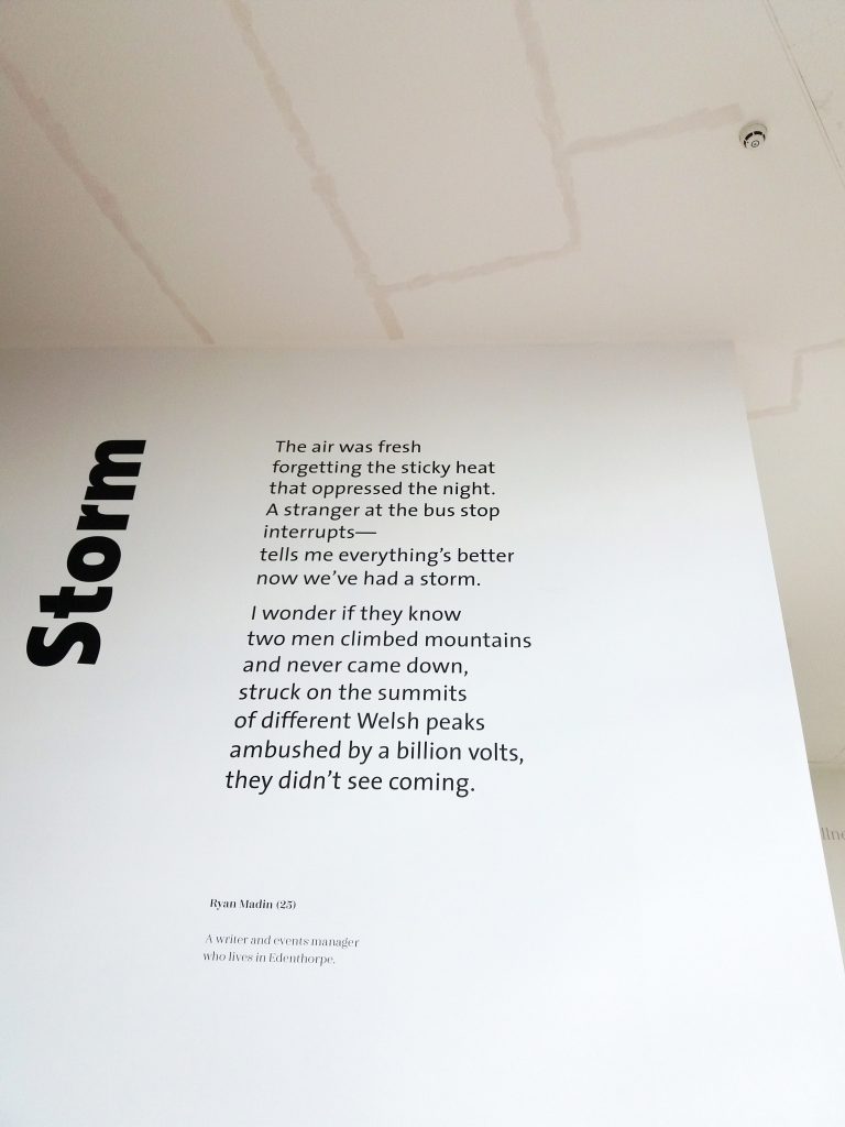Doncaster is currently hosting the first ever poetry exhibition in a commercial shopping space in the UK, possibly even the world (Google has yet to provide a final answer on this one so let’s go with it…WORLD!)